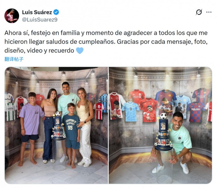 博鱼电竞-苏亚雷斯社媒晒照庆祝39岁生日:感谢大家的生日祝福