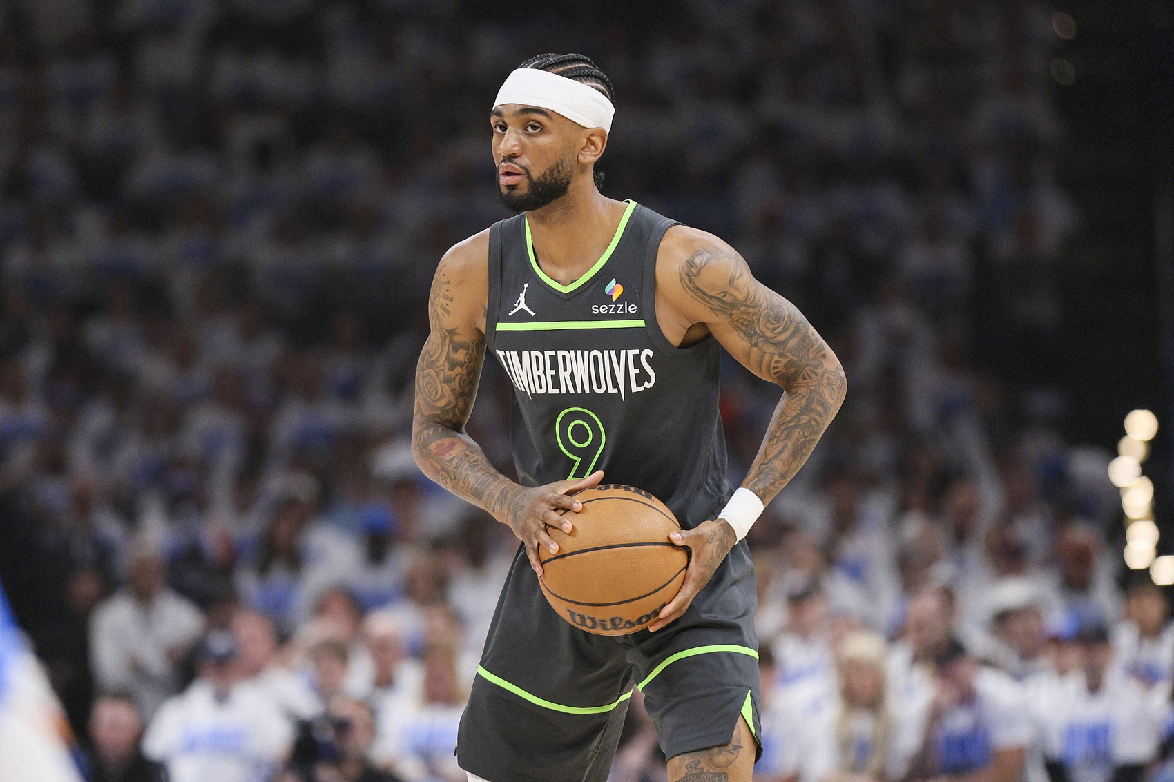 摩西-马龙、乔治-格文、马努-吉诺比利、姚明、多米尼克-威尔金斯、拉马库斯-阿尔德里奇、克莱-汤普森、鲁迪-戈贝尔、多诺万-米切尔、杰伦-布伦森和爱德华兹!”